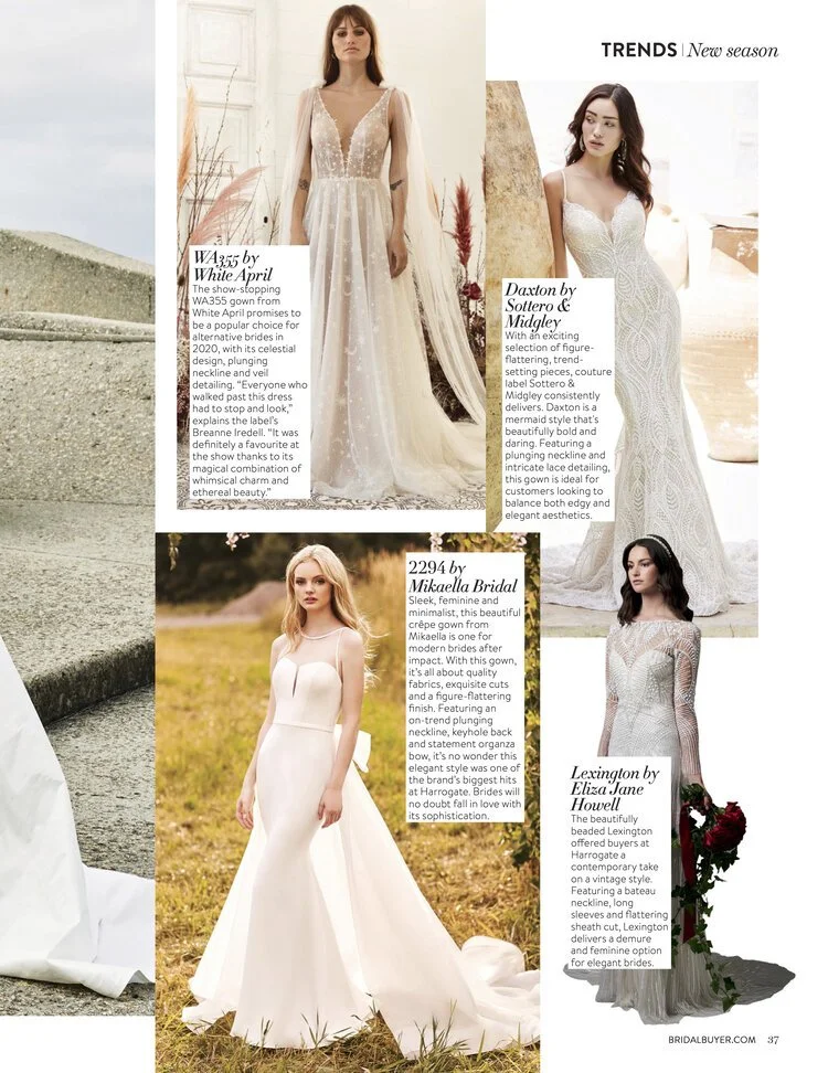 Our White April (WA6060) gown was featured on the cover of the Sept/Oct 2018 Bridal Buyer Magazine.